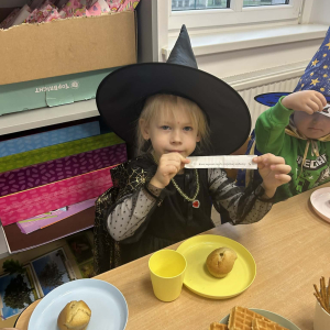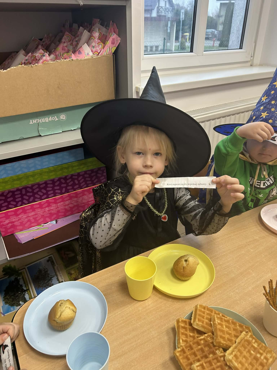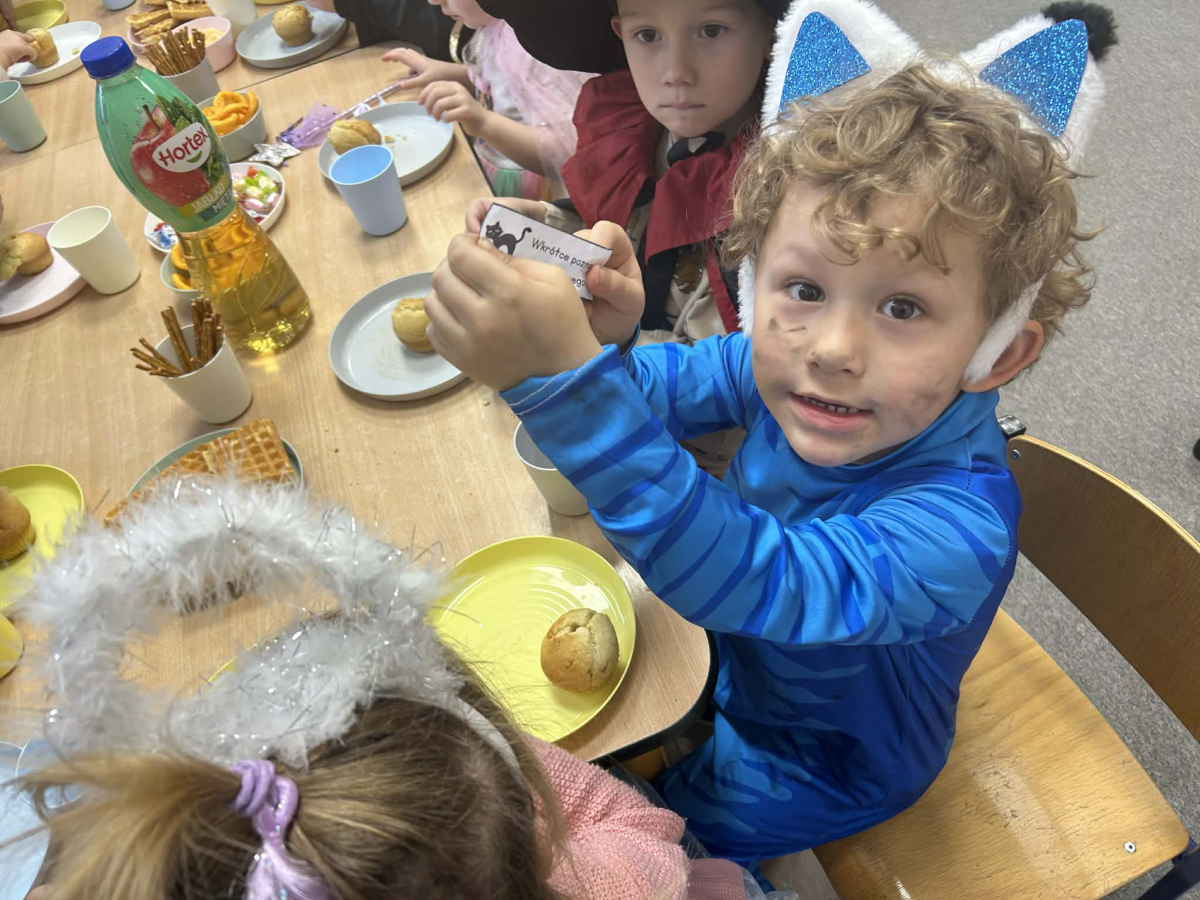 Wśród pysznych babeczek ukryte były magiczne wróżby, które dzieci odkrywały z ogromną ciekawością i uśmiechem na twarzy.
