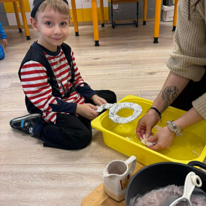 Następnie dzieci uczestniczyły w zabawach andrzejkowych, które pozwoliły im sprawdzić, kim zostaną w przyszłości – może strażakiem, lekarzem, nauczycielem, a może artystą?