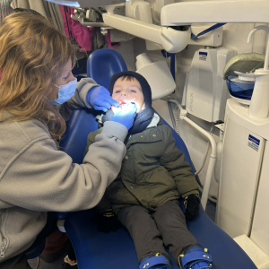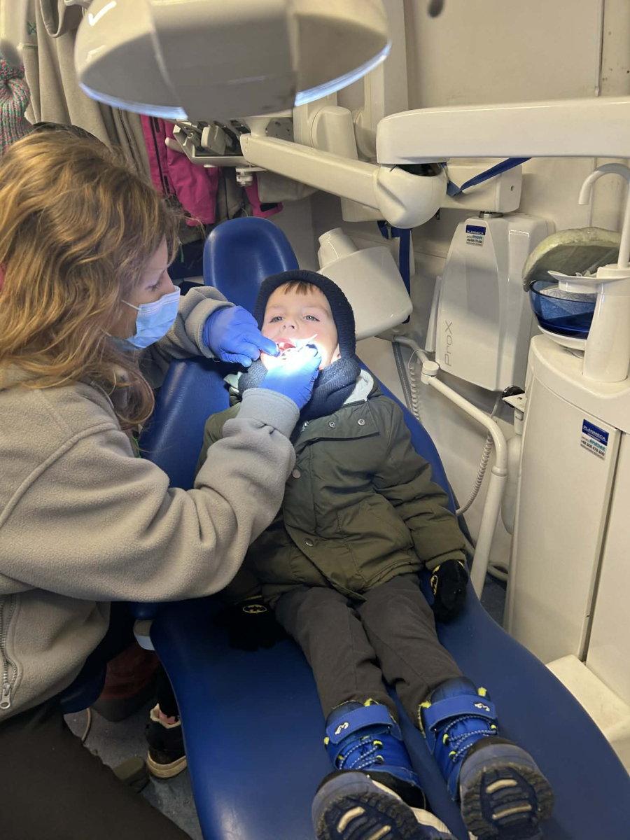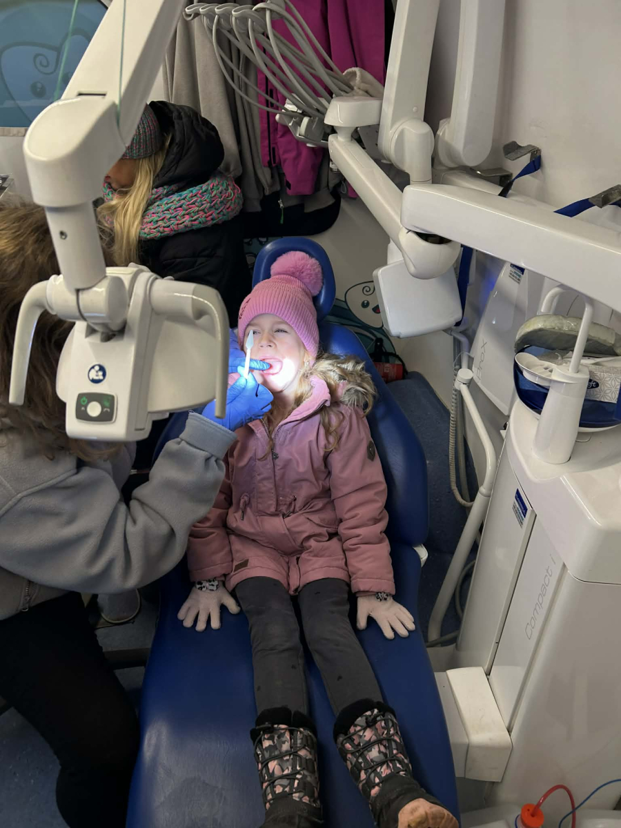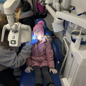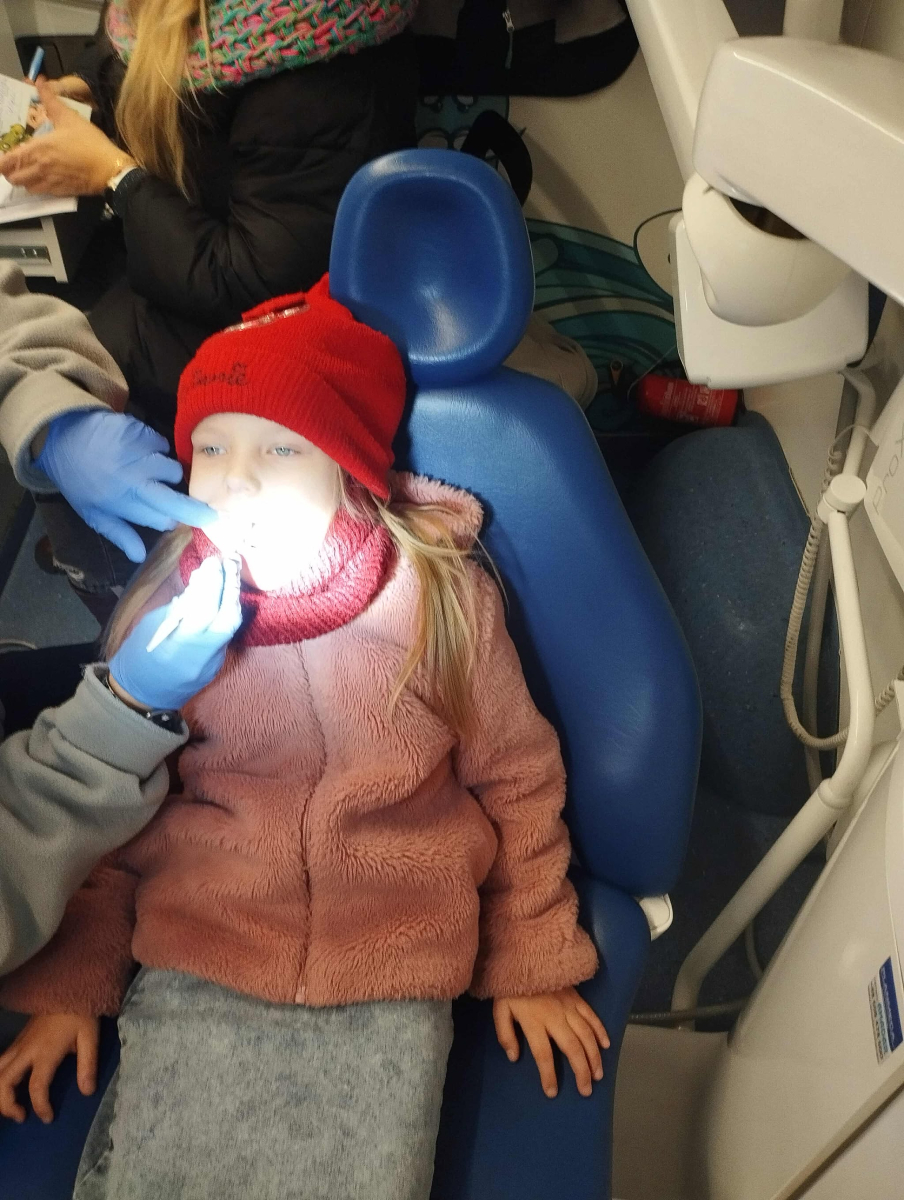 Dzieci z ciekawością oglądały wnętrze dentobusu, dowiedziały się, jak dbać o higienę jamy ustnej i dlaczego warto regularnie odwiedzać dentystę.