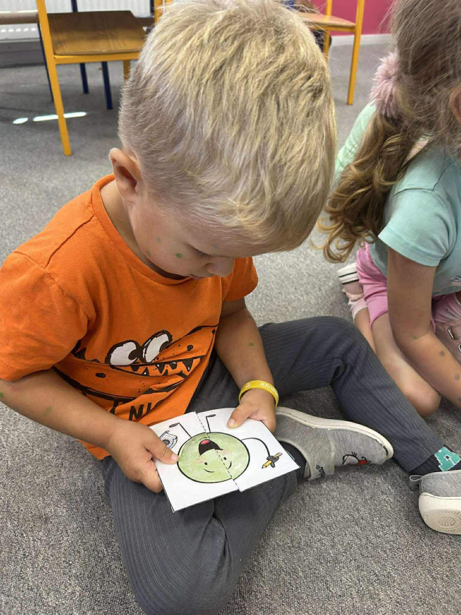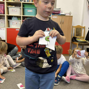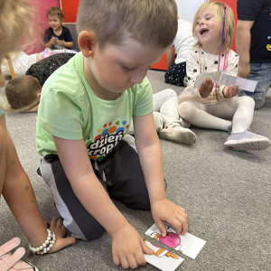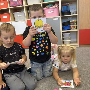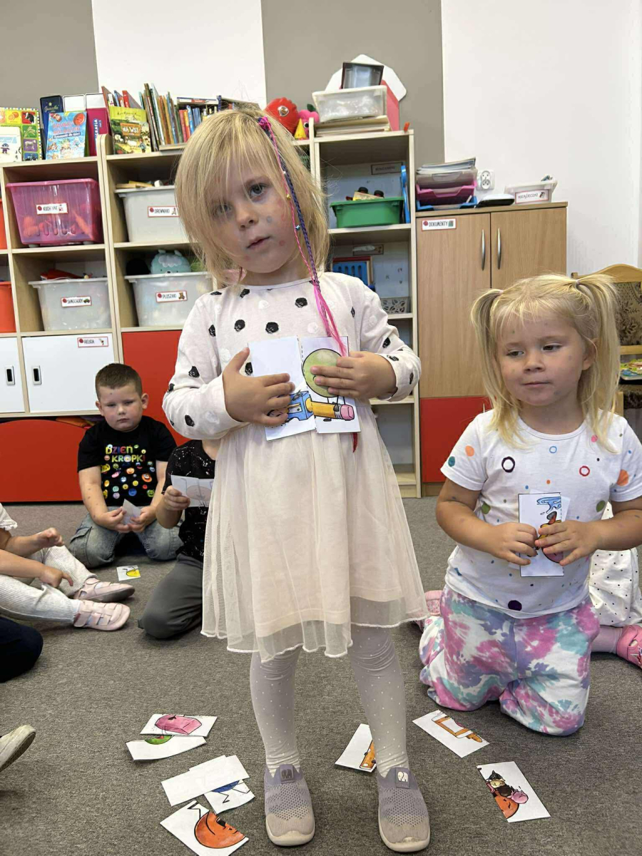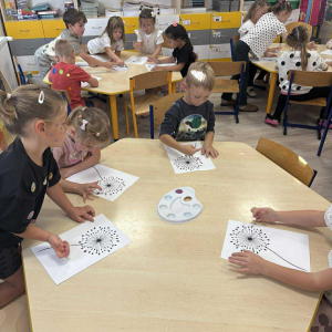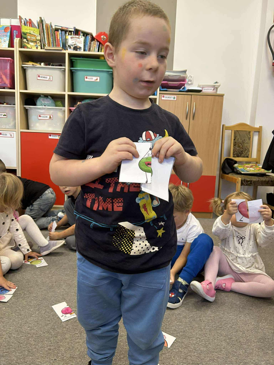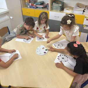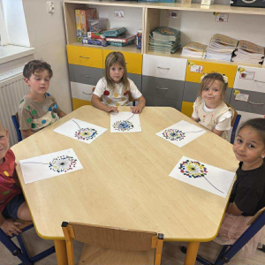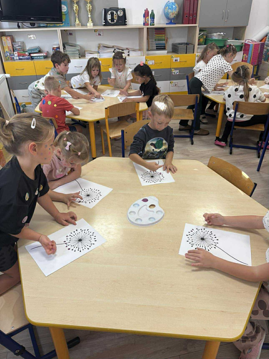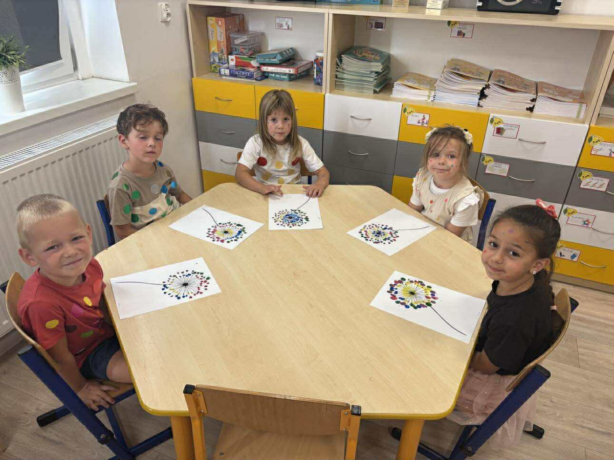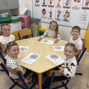 Na zajęciach poznaliśmy genezę tego święta. Dzieci uważnie wysłuchały opowiadania, jak to zwyczajna kropka zmieniła świat małej dziewczynki. Uświadomiło to przedszkolakom, że każdy z nas ma jakieś ukryte zdolności i talent. Tego dnia również dostrzegaliśmy kropki tam, gdzie wcześniej nikt na nie nie zwracał uwagi. Okazało się, że kropki towarzyszą nam w naszym codziennym życiu: są w kropkach biedronki, z kropki można utworzyć słońce, bombkę choinkową, kolorową kulę, piłkę itd. Tego dnia dzieci odkrywały swoje mocne strony, nabierały odwagi, tańczyły i wykonały kropeczkowe prace plastyczne. Było kolorowo i radośnie!