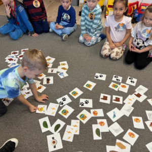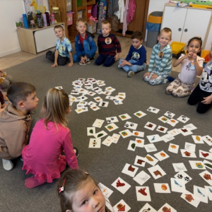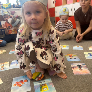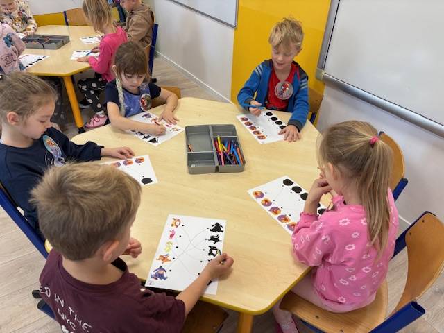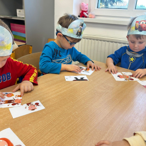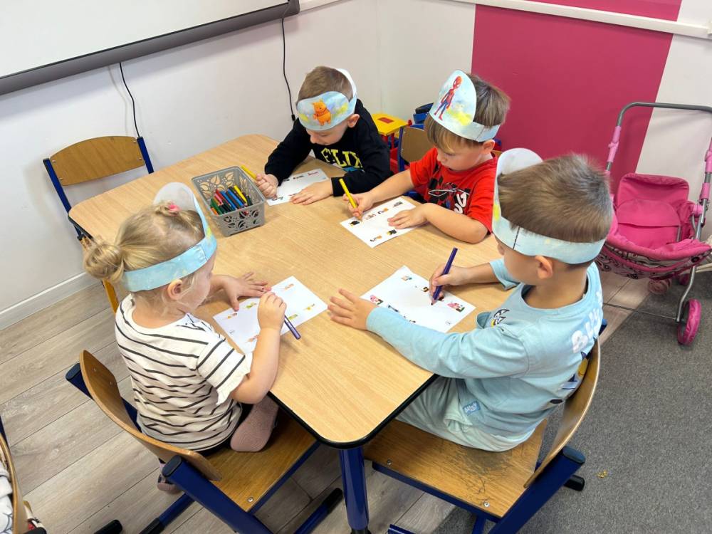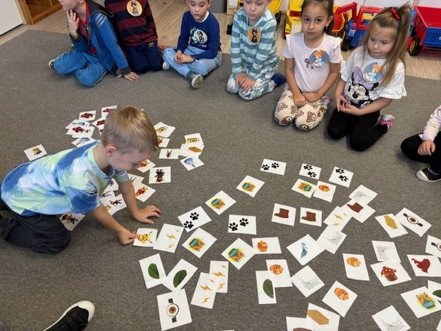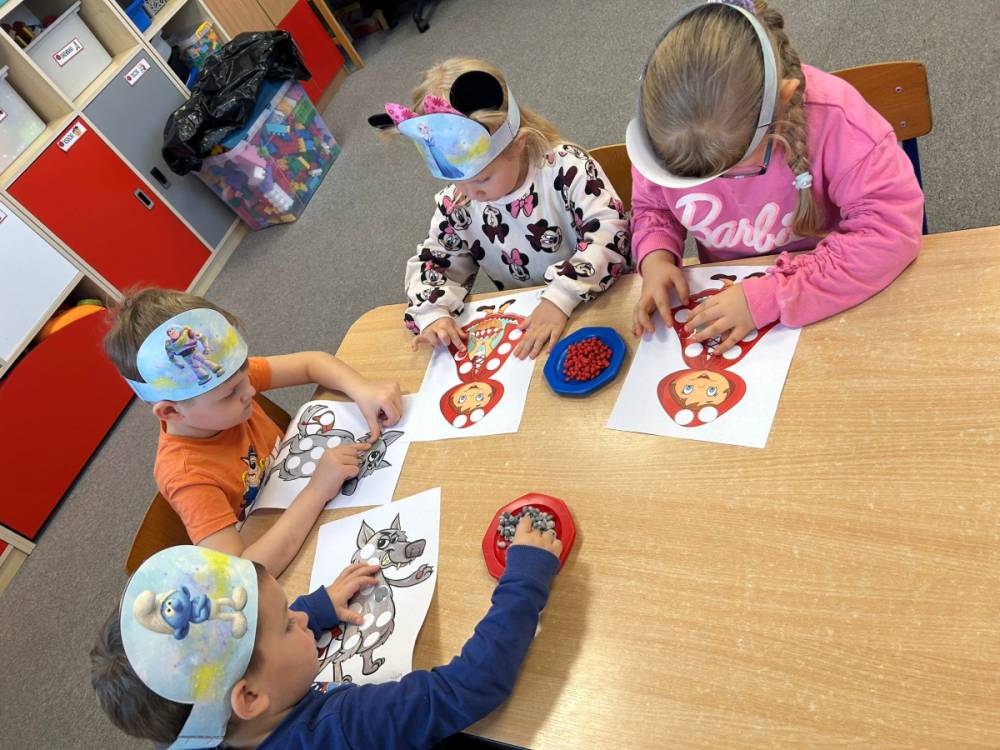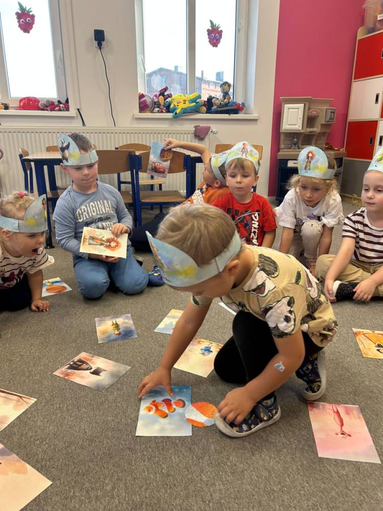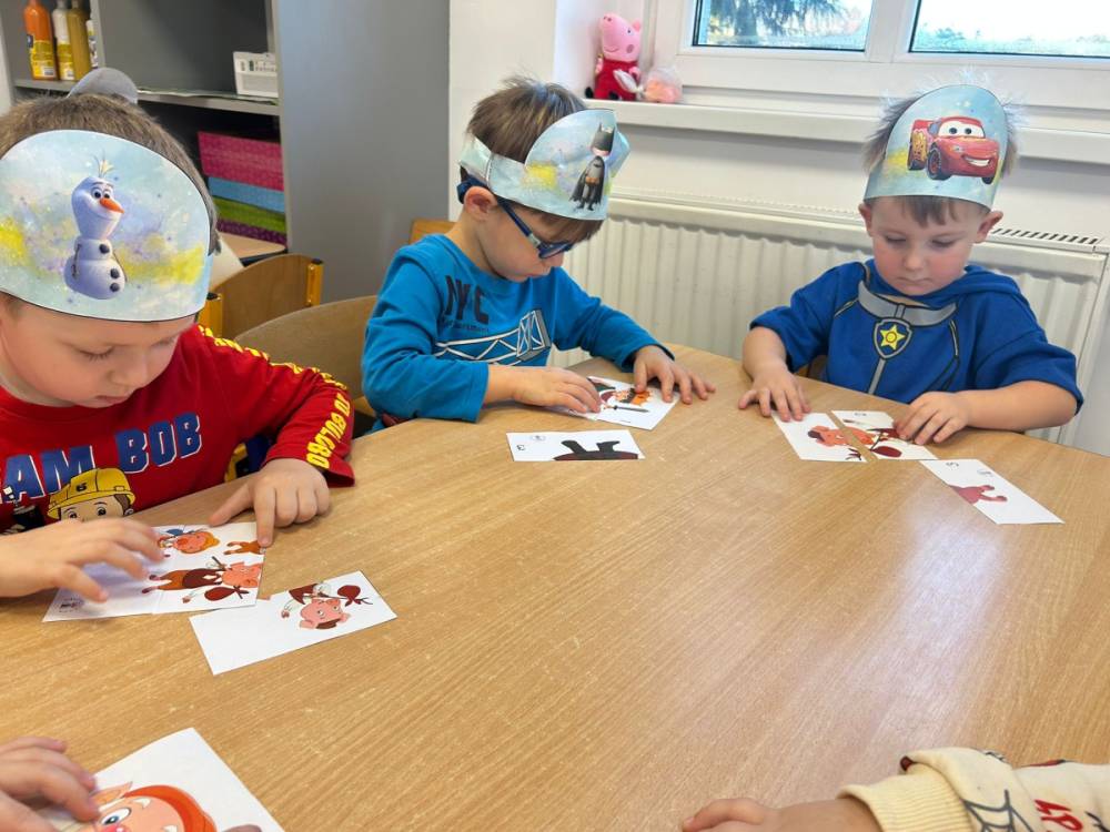 - Odszukiwanie obrazków z brakującymi elementami – przedszkolaki wytężały wzrok, by odnaleźć, gdzie pasuje dany fragment ilustracji.
