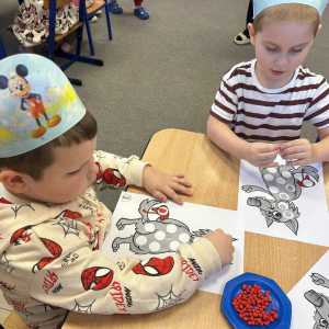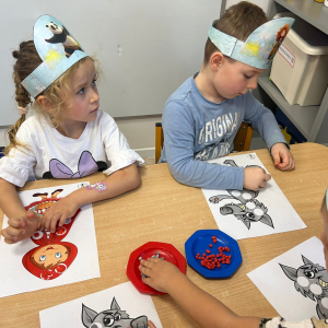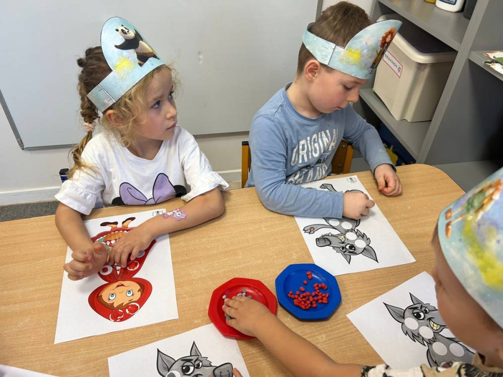 - Wyklejanie plasteliną bajkowych obrazków – dzieci rozwijały swoją kreatywność i zdolności manualne.