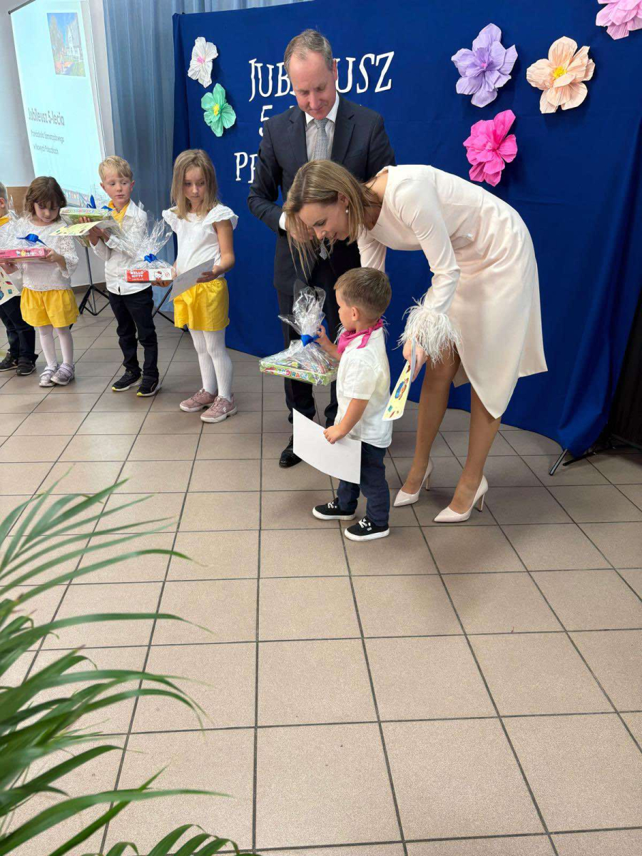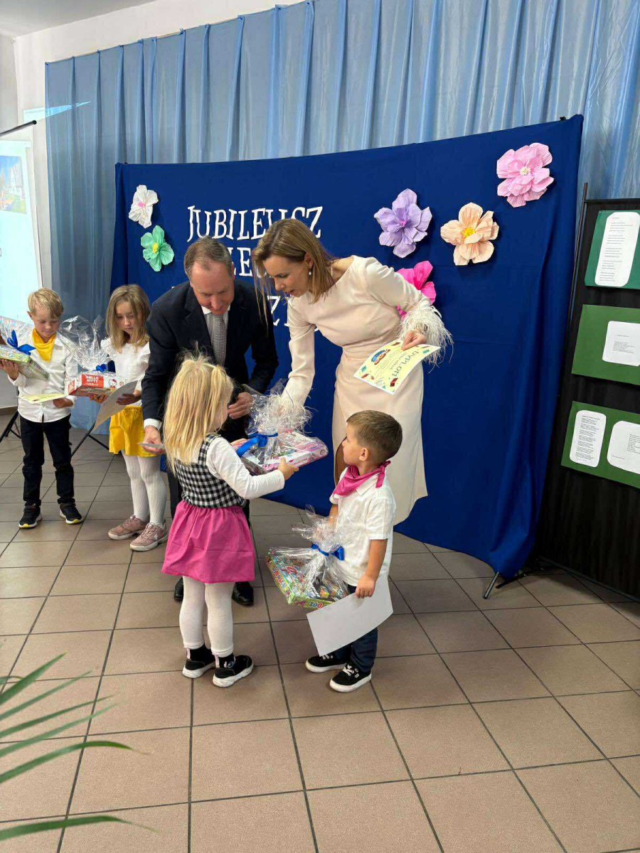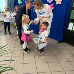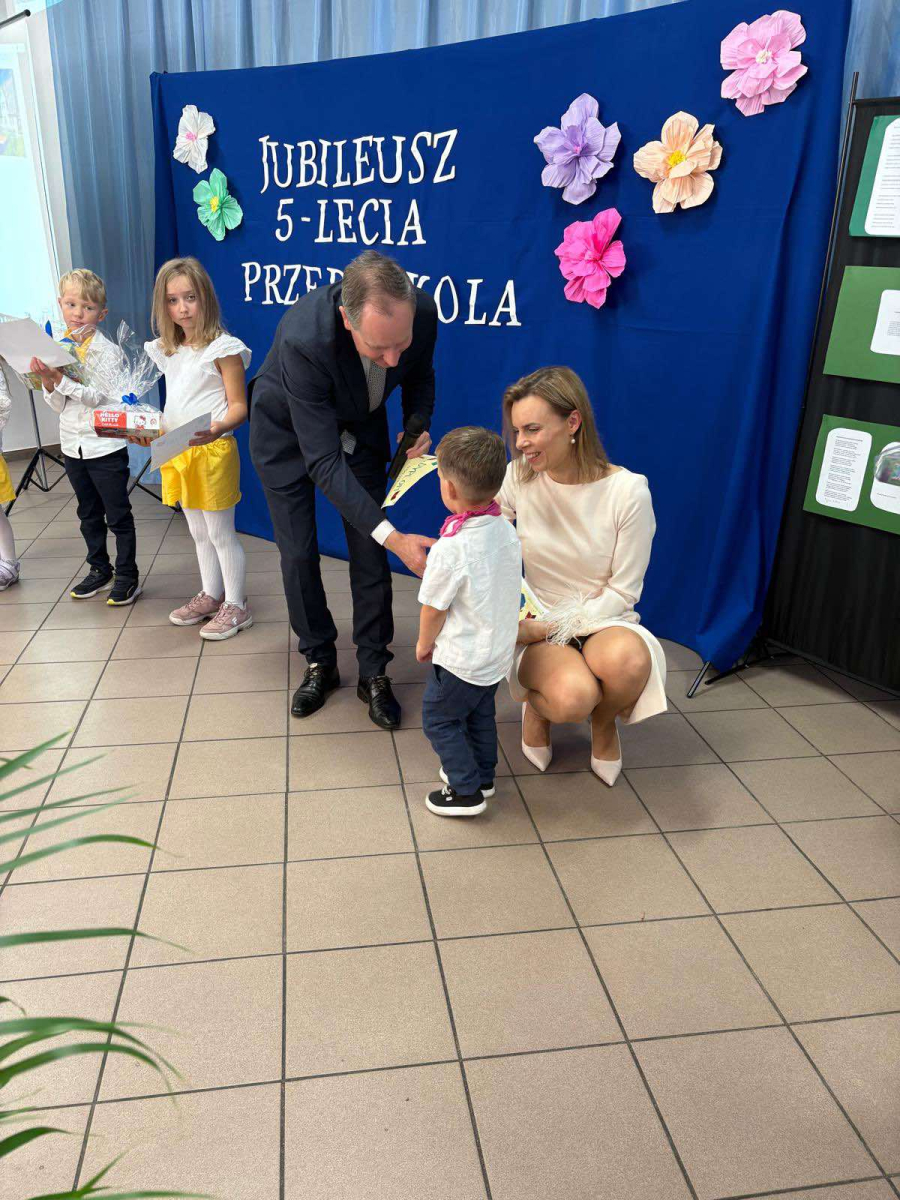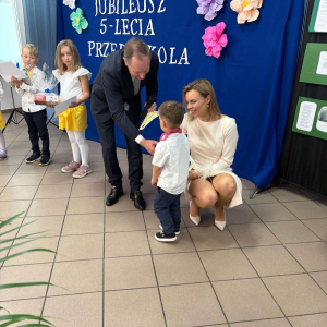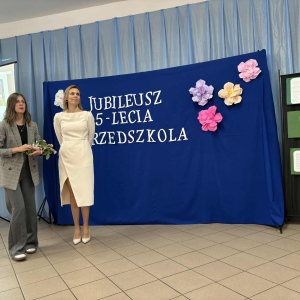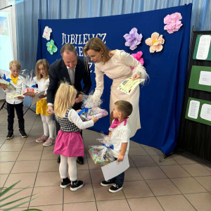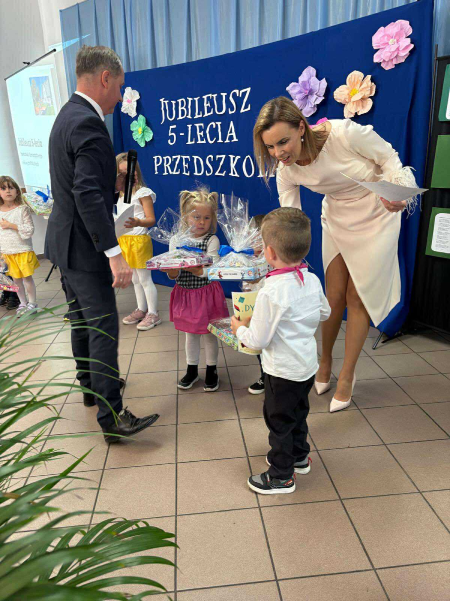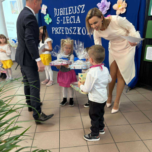 Pani Dyrektor odczytała treść listów gratulacyjnych otrzymanych z Ministerstwa Edukacji Narodowe oraz Kuratorium Oświaty w Gdańsku, w których złożone zostały wyrazy uznania za osiągnięcia pierwszych pięciu lat funkcjonowania Przedszkola, połączone z życzeniami dalszego rozwoju. Do życzeń dołączył się również Pan Andrzej Hinc, wójt gminy Stara Kiszewa, wygłaszając w swojej przemowie wiele ciepłych słów opisujących pracę Pani Dyrektor, grona pedagogicznego oraz wszystkich pracowników tworzących wspólnie to wyjątkowe miejsce dla najmłodszych mieszkańców naszej gminy.