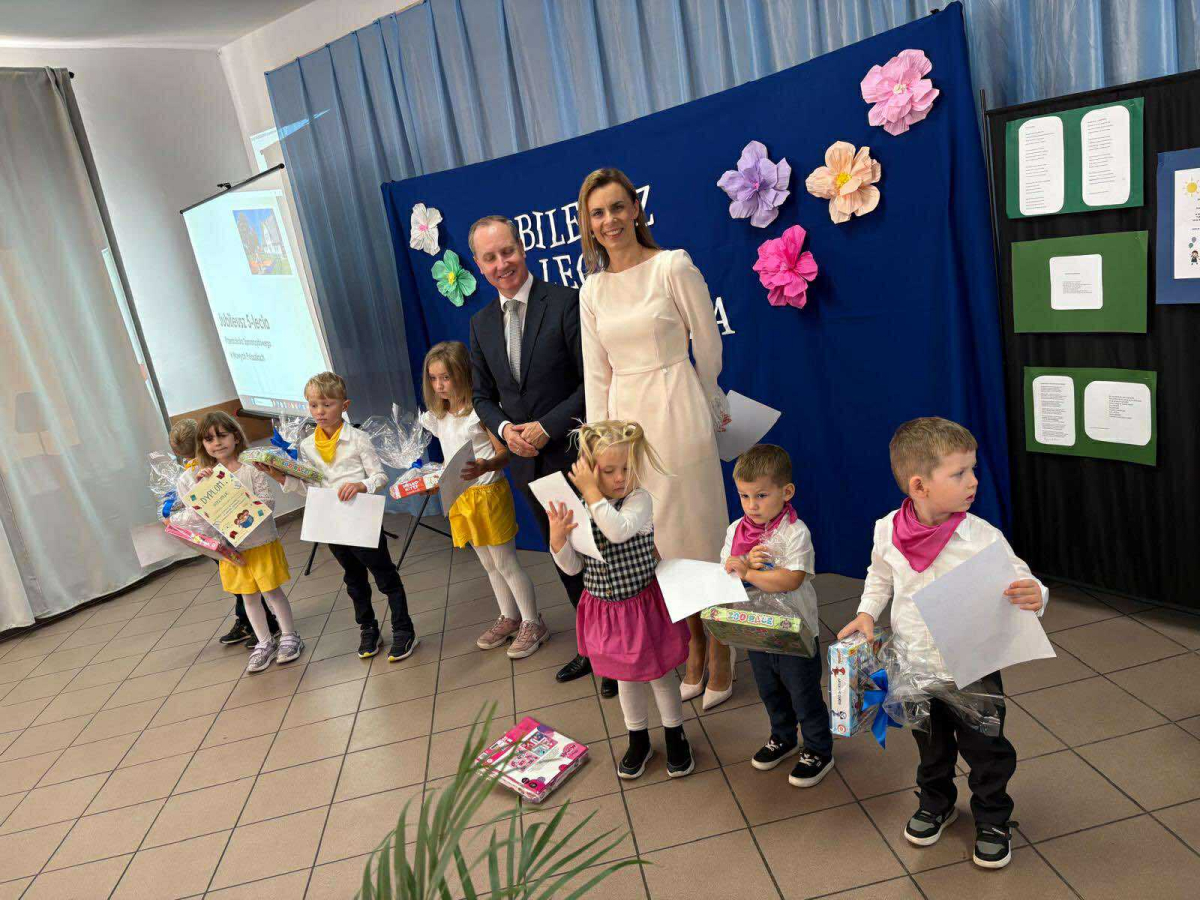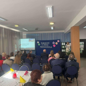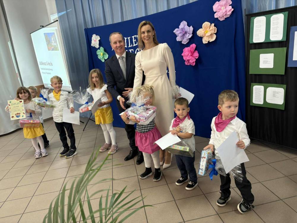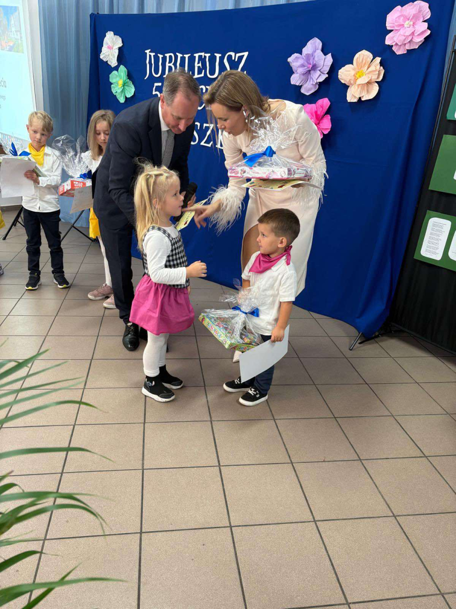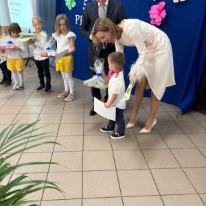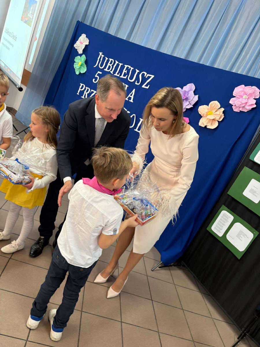 Pani Dyrektor odczytała treść listów gratulacyjnych otrzymanych z Ministerstwa Edukacji Narodowe oraz Kuratorium Oświaty w Gdańsku, w których złożone zostały wyrazy uznania za osiągnięcia pierwszych pięciu lat funkcjonowania Przedszkola, połączone z życzeniami dalszego rozwoju. Do życzeń dołączył się również Pan Andrzej Hinc, wójt gminy Stara Kiszewa, wygłaszając w swojej przemowie wiele ciepłych słów opisujących pracę Pani Dyrektor, grona pedagogicznego oraz wszystkich pracowników tworzących wspólnie to wyjątkowe miejsce dla najmłodszych mieszkańców naszej gminy.