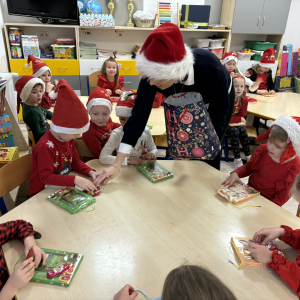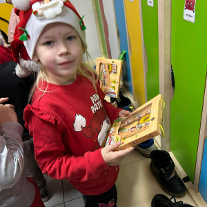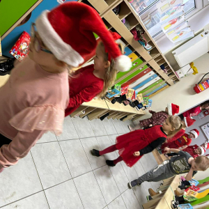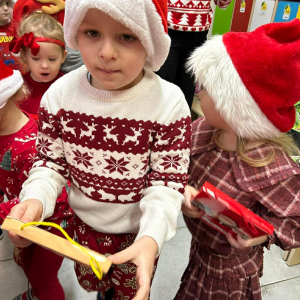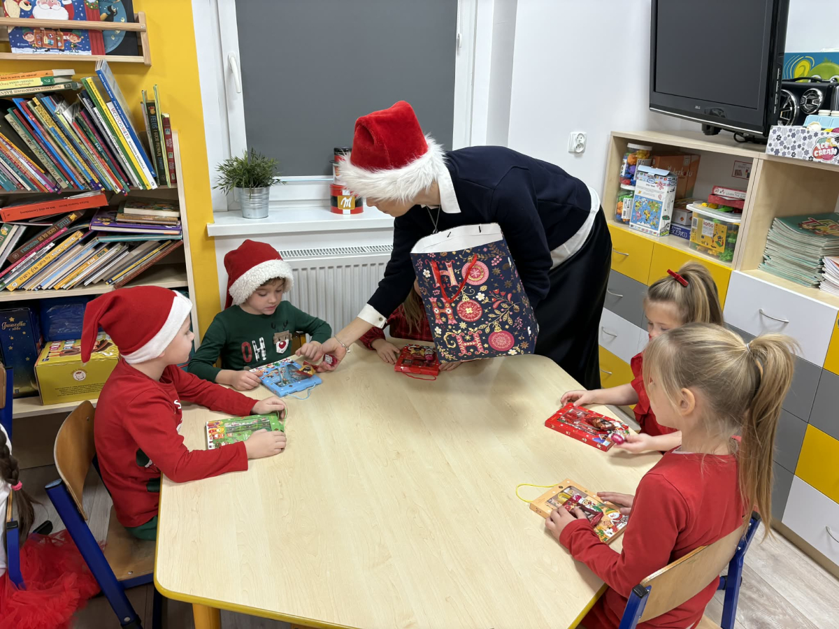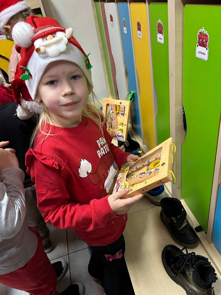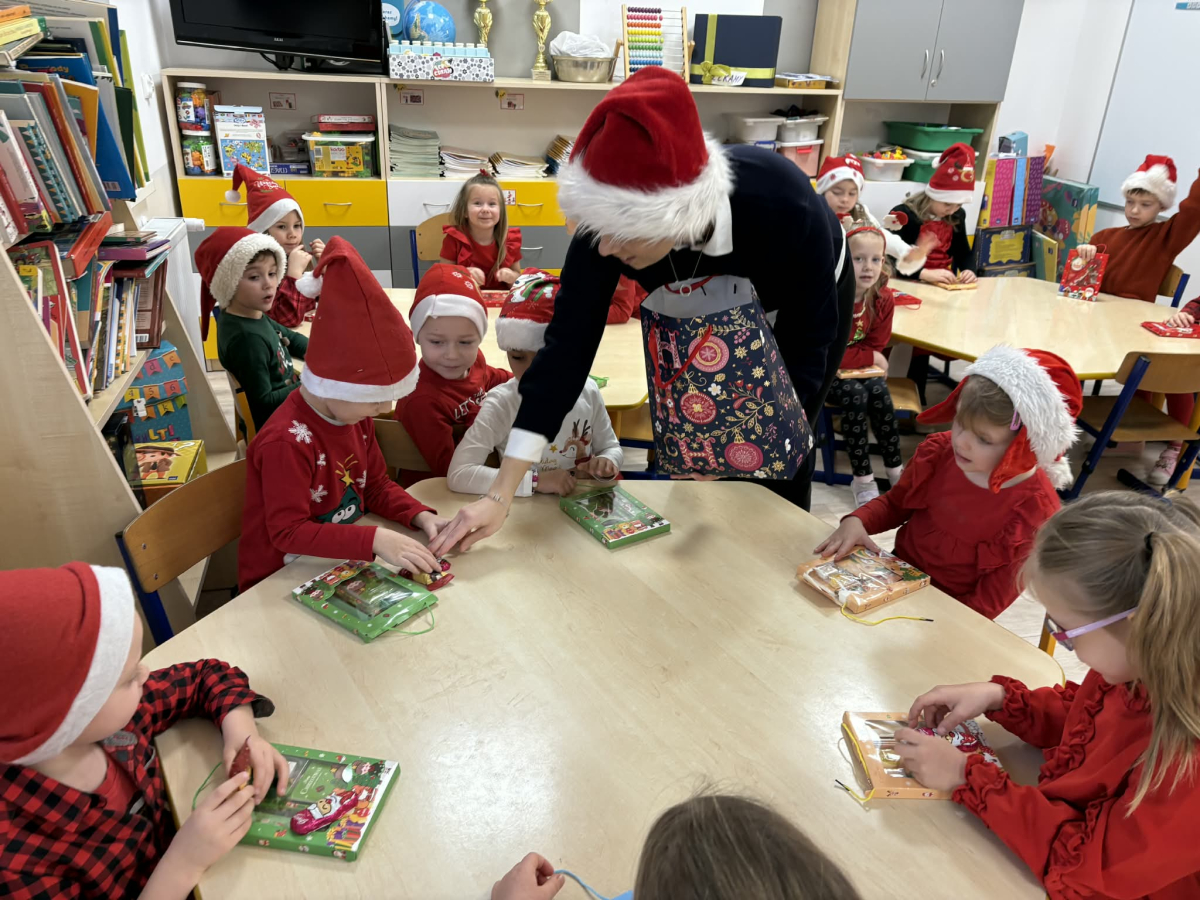 Już od rana dzieci z niecierpliwością zaglądały do swoich butów w szatni — i jakie było ich zdziwienie, gdy okazało się, że Święty Mikołaj zostawił tam drobne upominki!