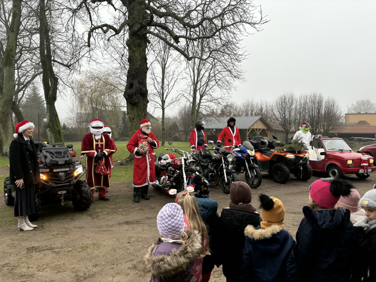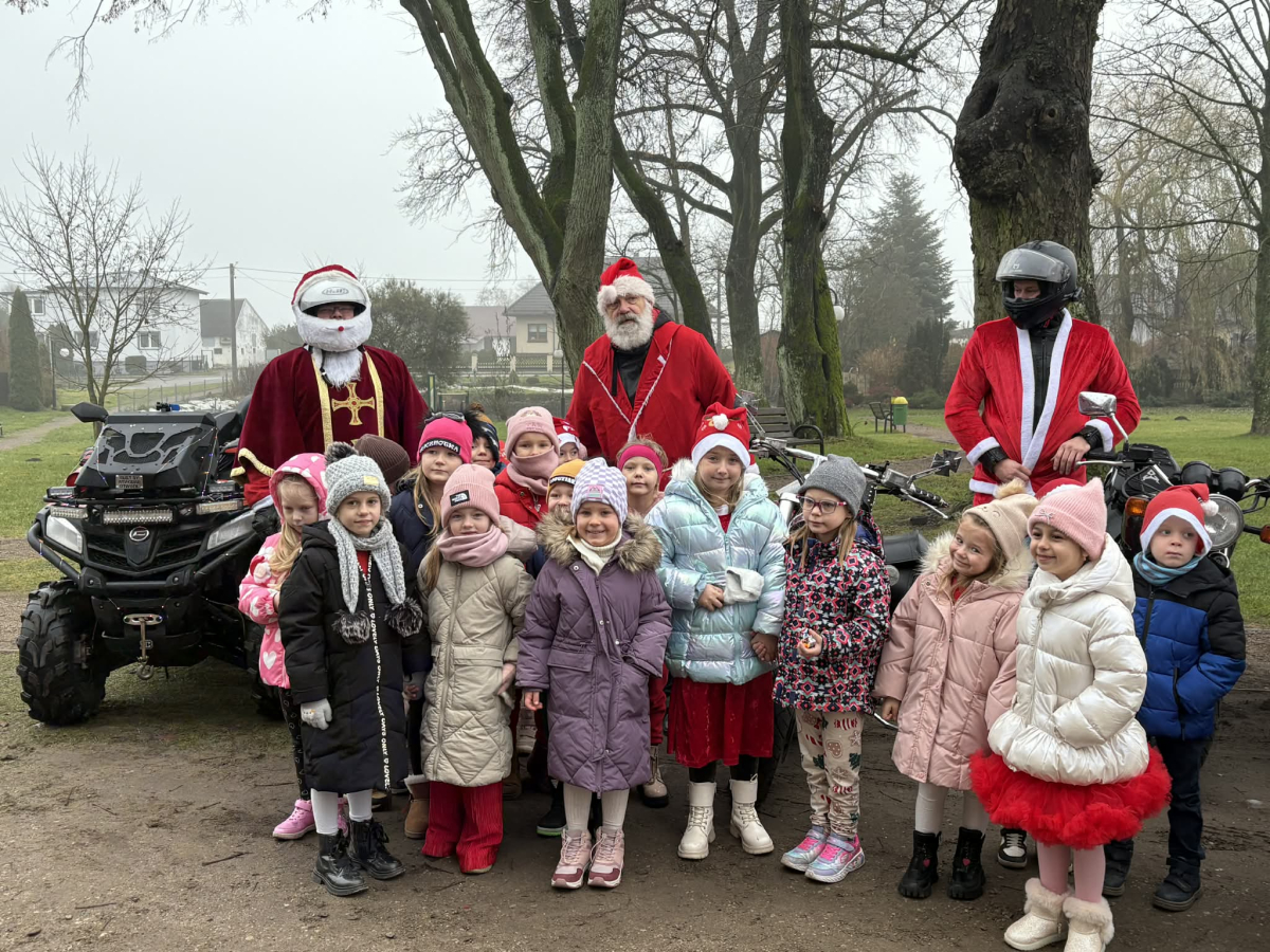 W ciągu dnia odwiedzili nas także Mikołaje na motorach, którzy zrobili ogromne wrażenie na wszystkich przedszkolakach. Ryk silników, dźwięk dzwoneczków i czerwone czapki sprawiły, że na twarzach dzieci pojawiły się szerokie uśmiechy.