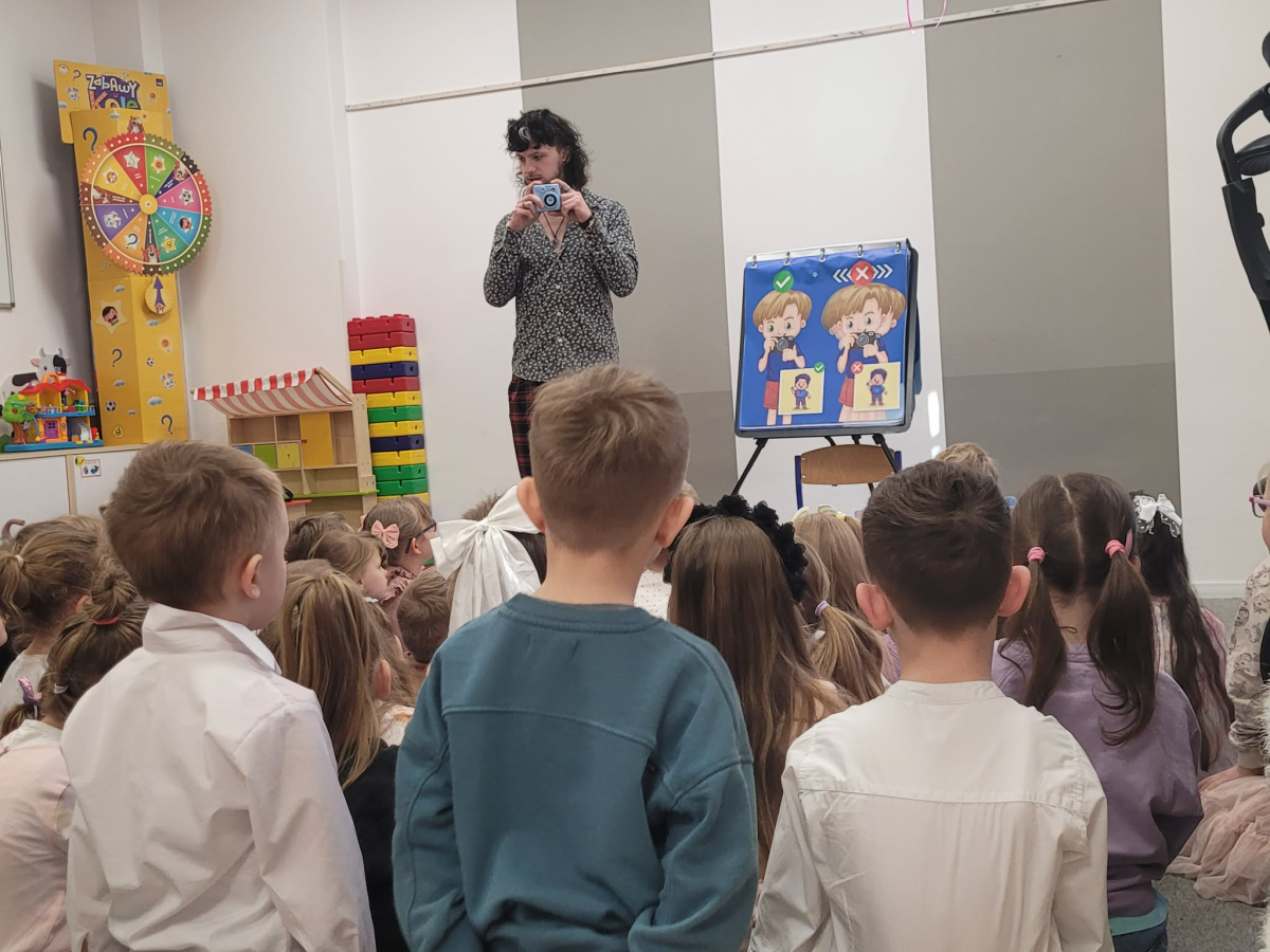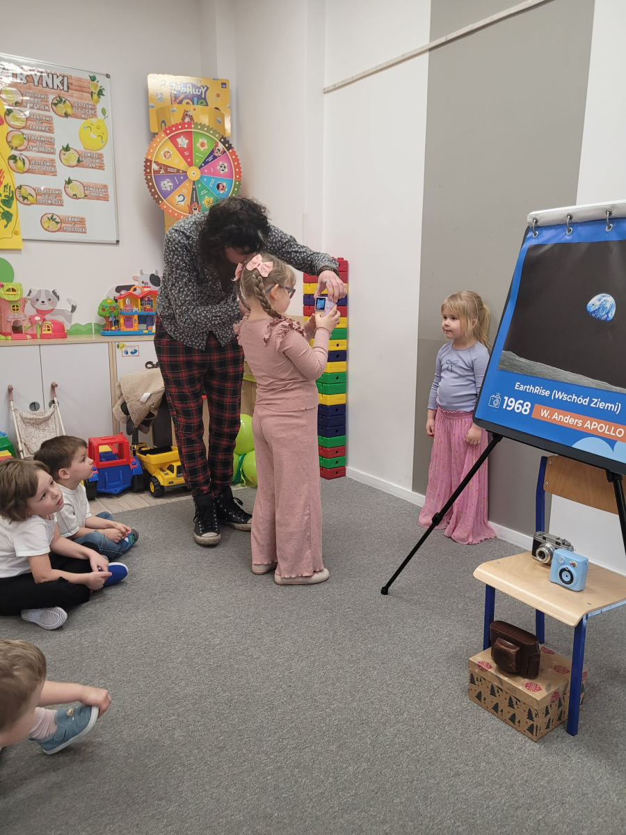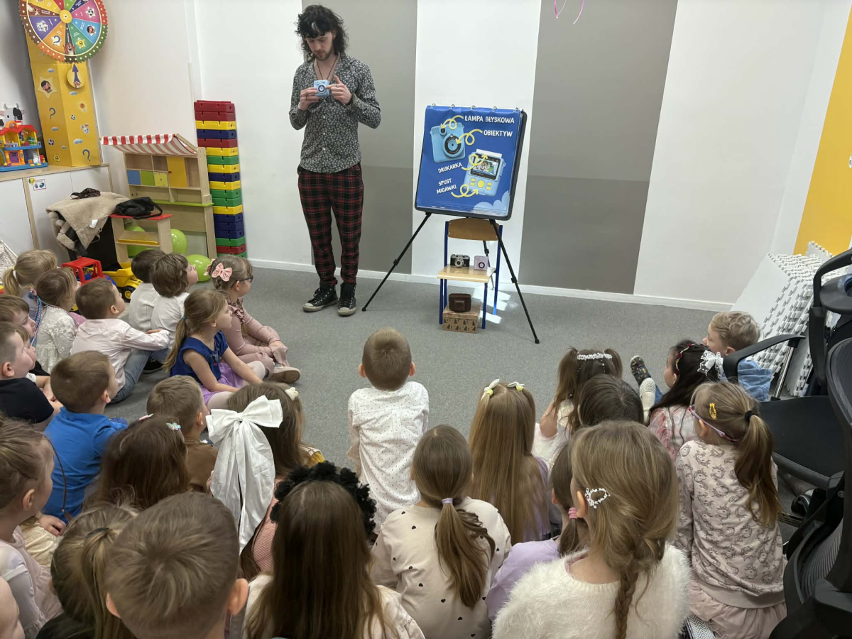 Dzieci miały okazję poznać podstawy robienia zdjęć, zobaczyć jak działa aparat oraz spróbować swoich sił w roli małych fotografów.