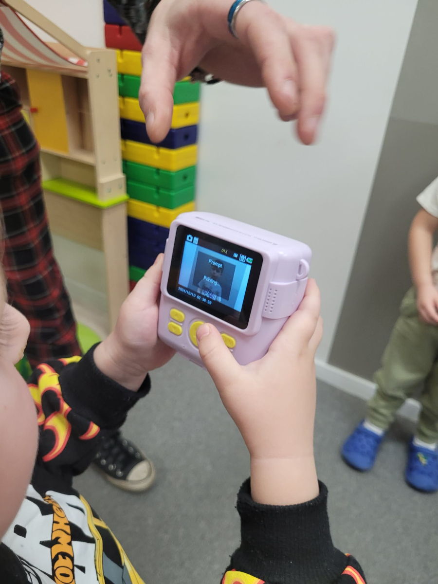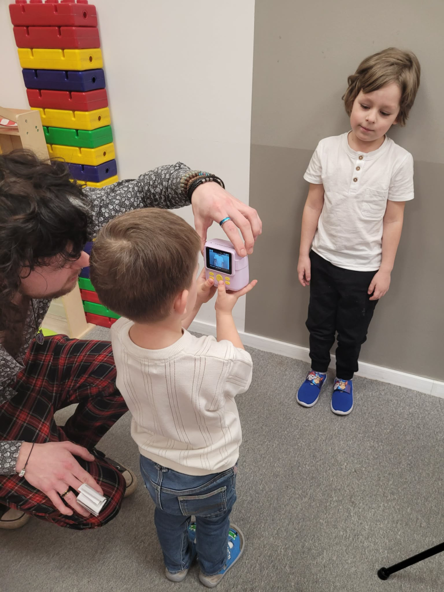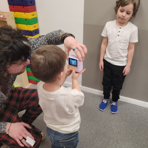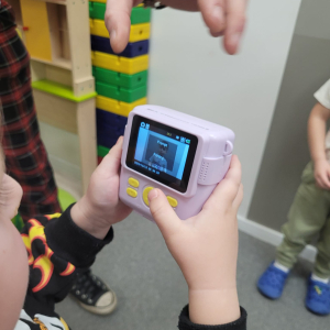 Przedszkolaki z wielkim zainteresowaniem odkrywały świat fotografii, robiąc zdjęcia kolegom, koleżankom oraz otaczającej je przestrzeni.