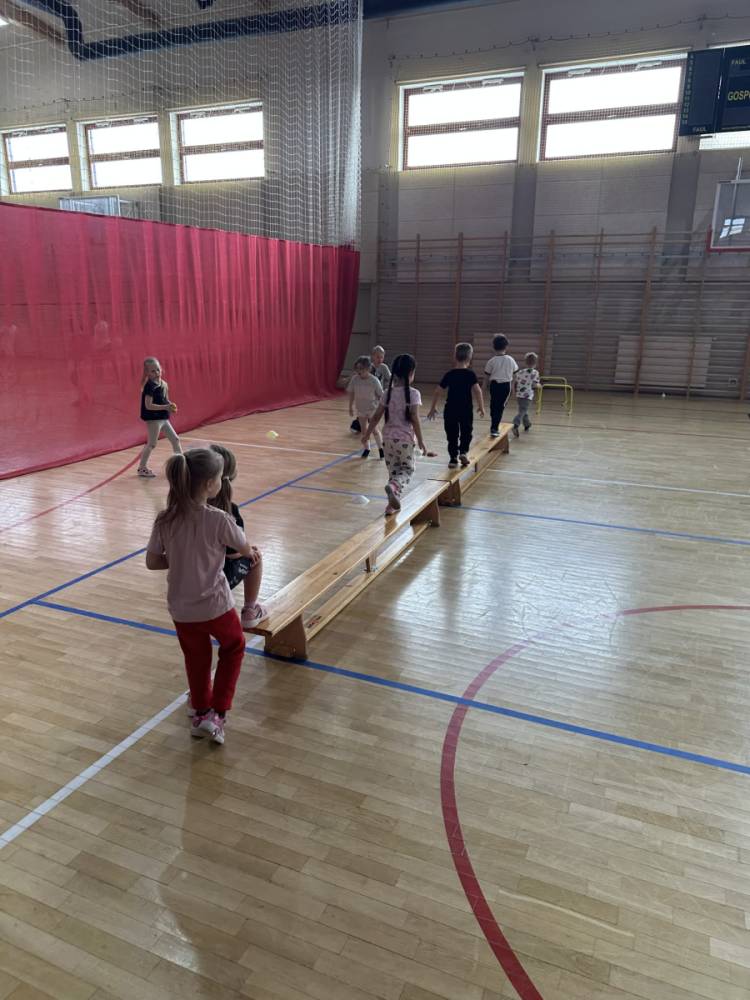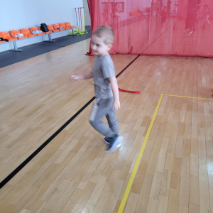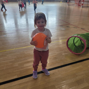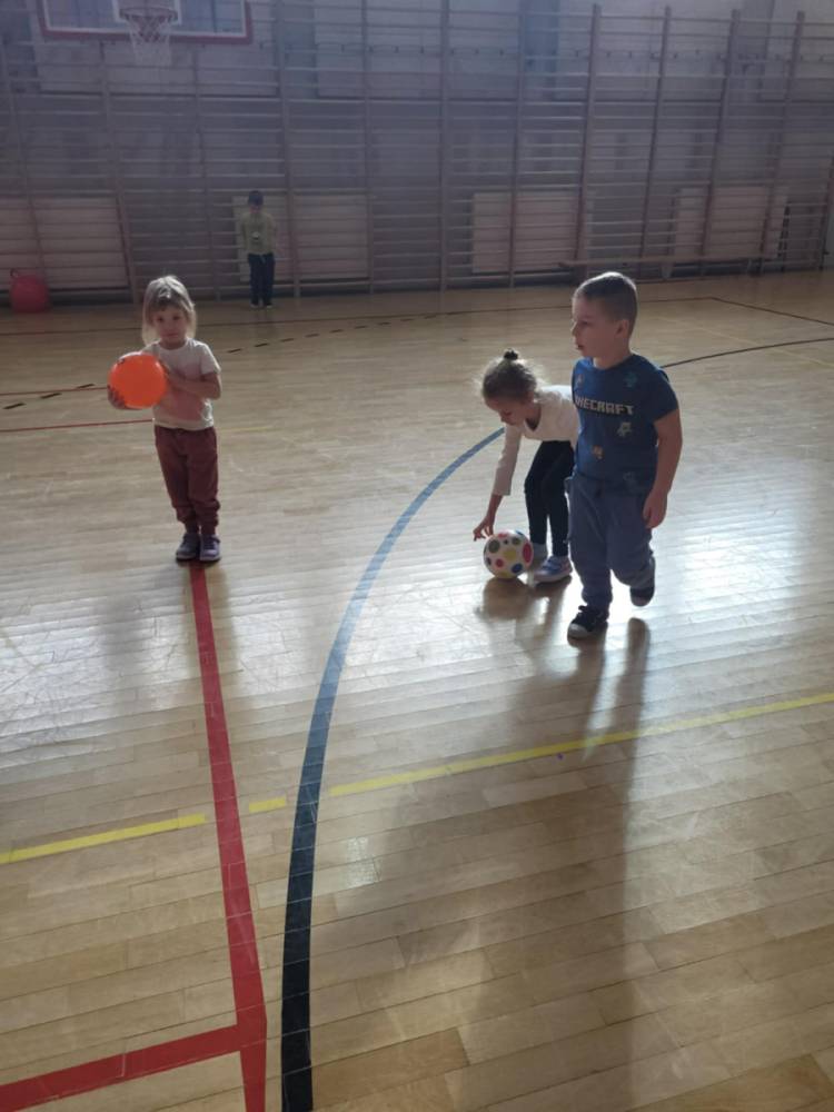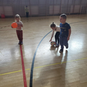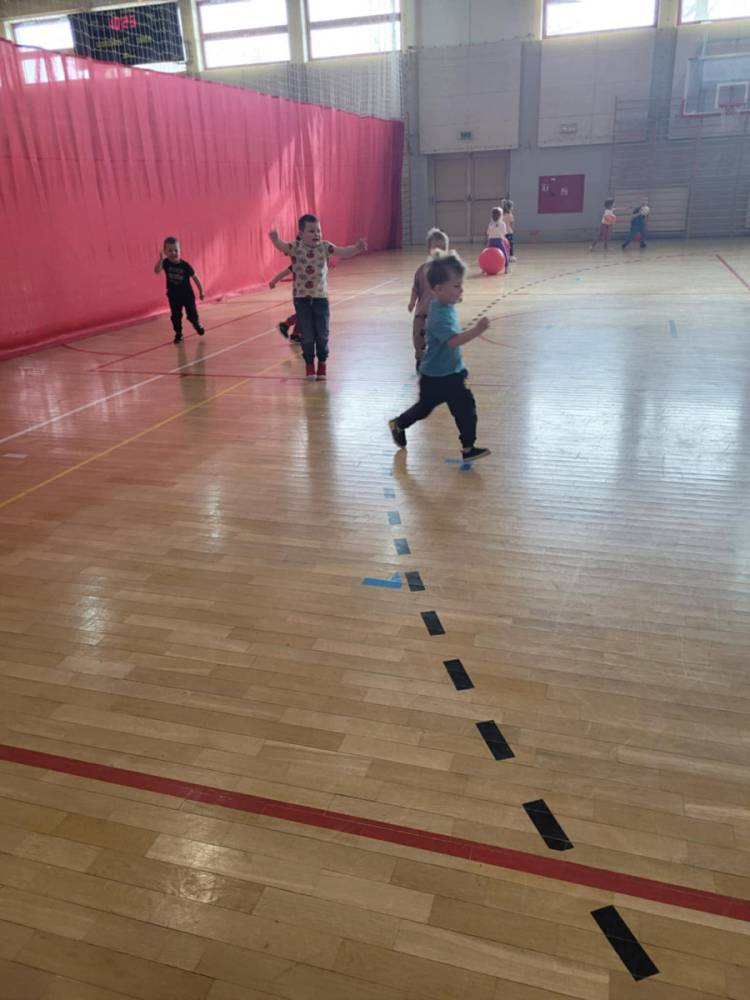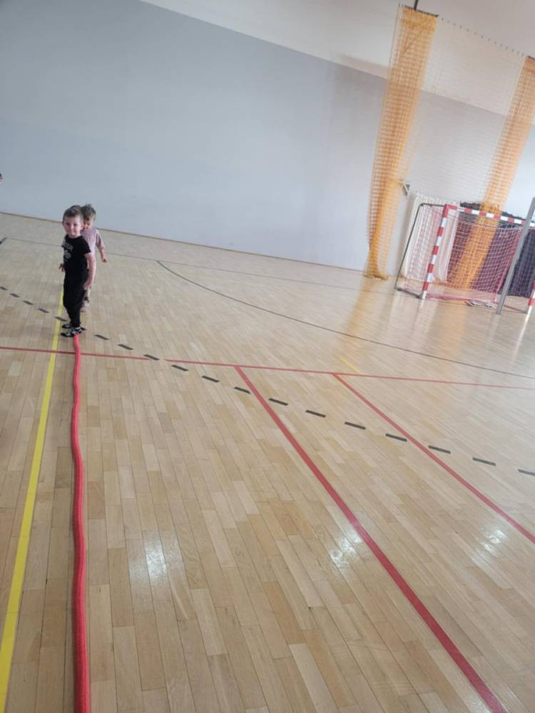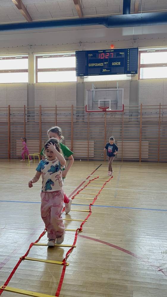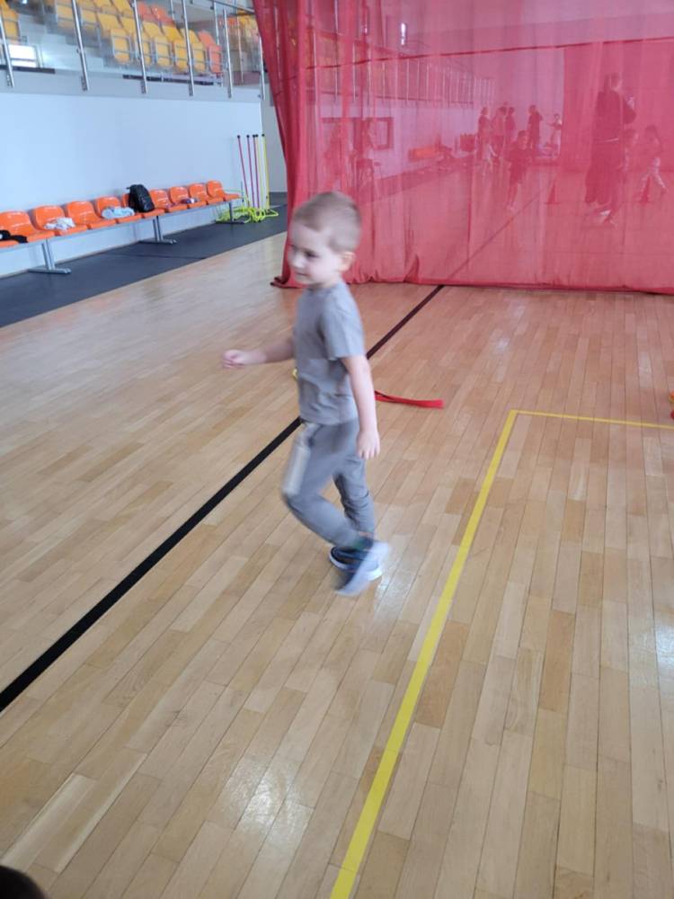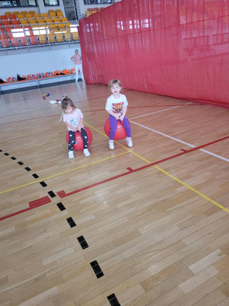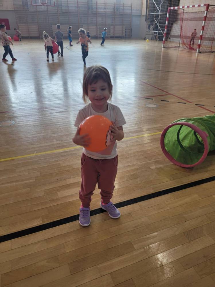 Na hali czekały na nich różnorodne aktywności: zabawy z piłkami, tory przeszkód, ćwiczenia z elementami biegu, skoku i równowagi.