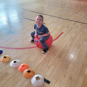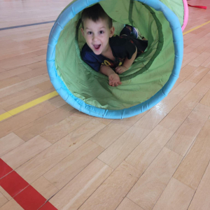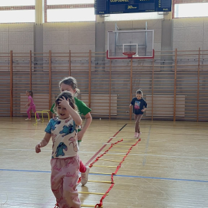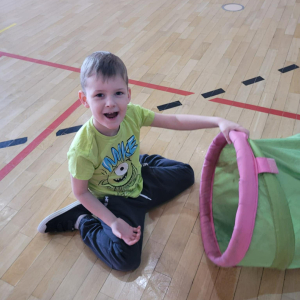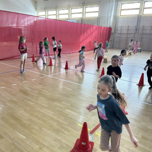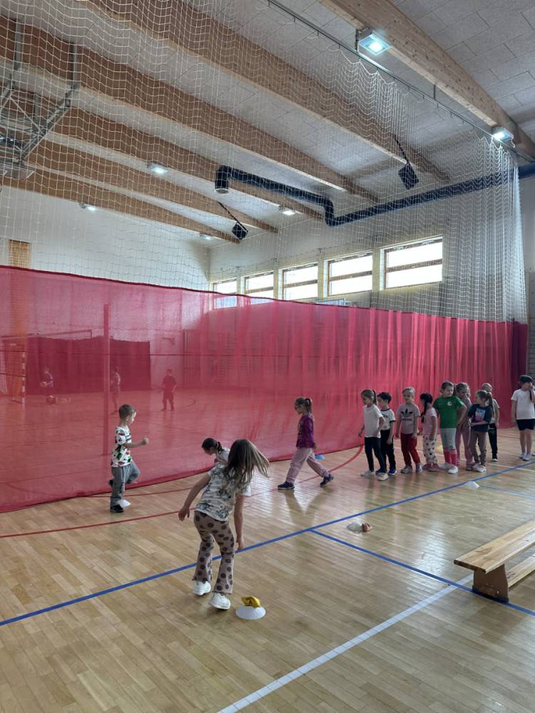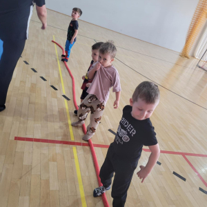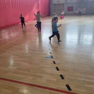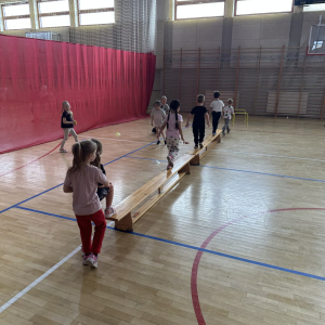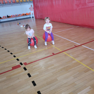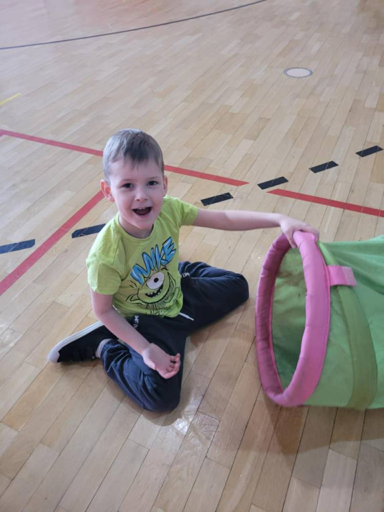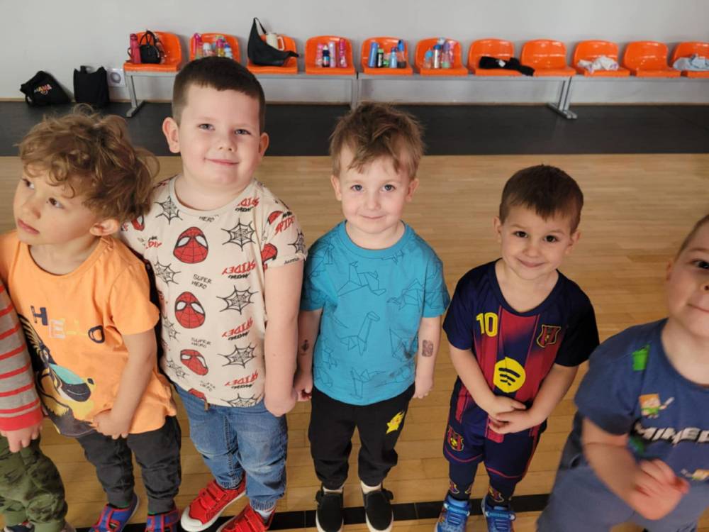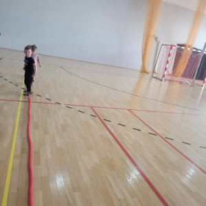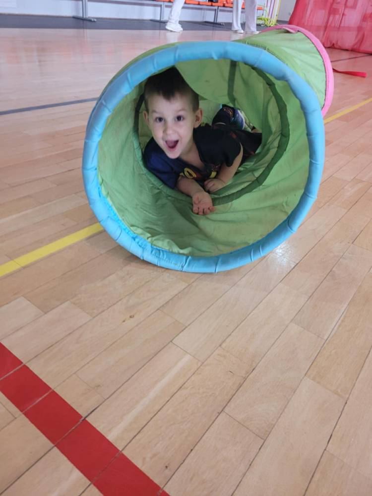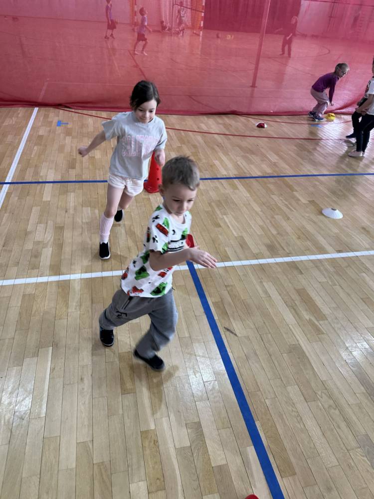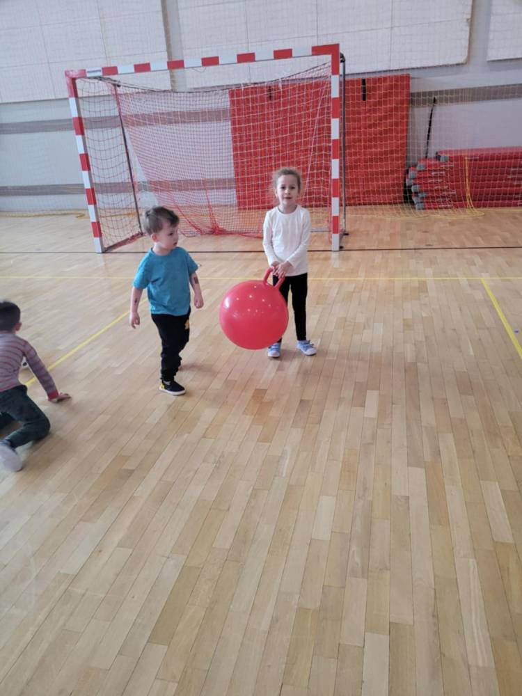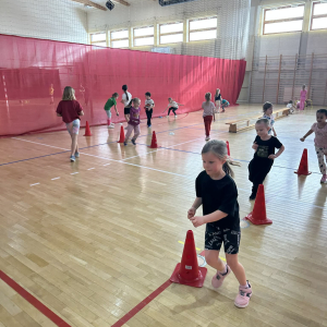 Na hali czekały na nich różnorodne aktywności: zabawy z piłkami, tory przeszkód, ćwiczenia z elementami biegu, skoku i równowagi.